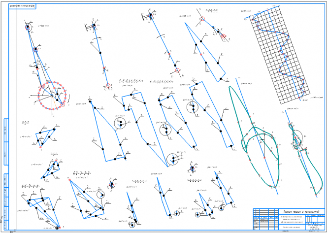 • На втором листе производится построение годографов сил, действующих в кинематических парах кривошипно-ползунного механизма двигателя. Осуществляется построение планов скоростей и ускорений, а также планов сил, необходимых для проверочного расчёта.