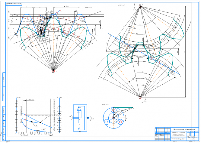 • На третьем листе производятся выбор коэффициентов смещения для проектируемой зубчатой передачи, построение станочного зацепления, необходимого для построения профиля зуба. Строятся зубчатая передача и планетарный редуктор.