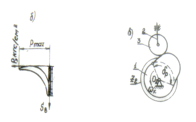 Механизм газораспределения двигателя состоит из кулачков (рис 60в) (кулачок 1, толкатель 2, ролик 3), закрепленных на распределительном валу, и толкателей, воздействующих на клапаны. Кулачковый механизм должен обеспечить заданный закон движения толкателя (рис. 60г).