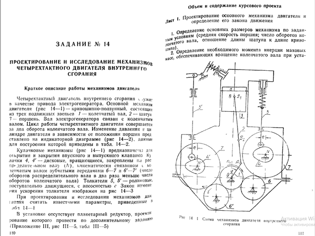 Курсовая работа 14: Проектирование и исследование механизмов четырехтактного двигателя внутреннего сгорания вариант А