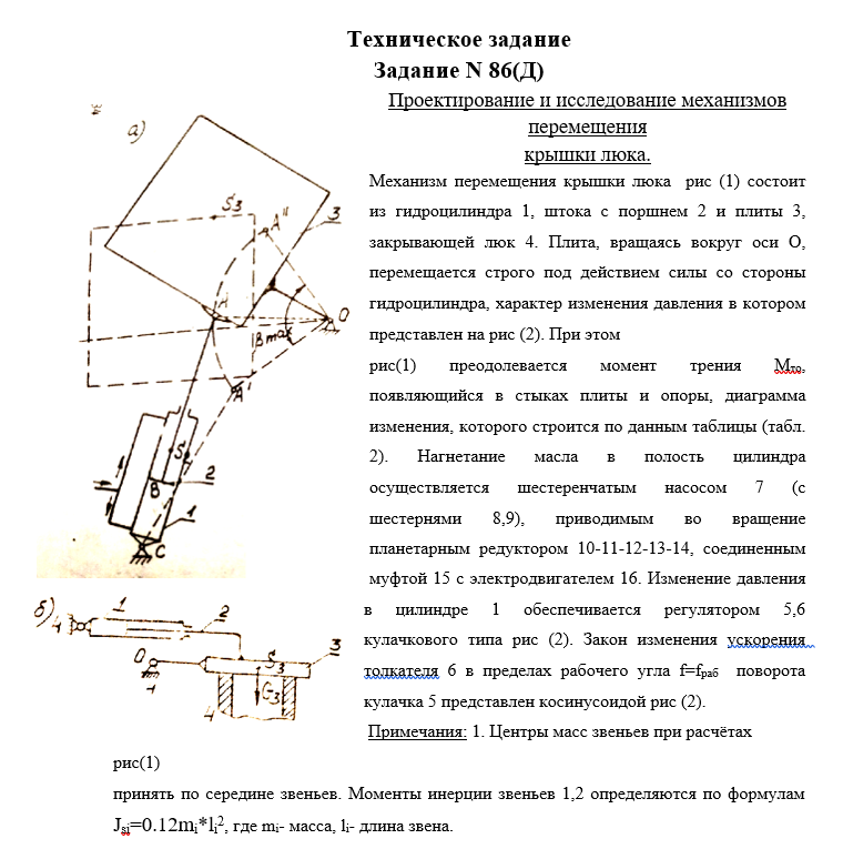 Курсовая работа 86: Проектирование и исследование механизмов перемещения крышки люка вариант Д
