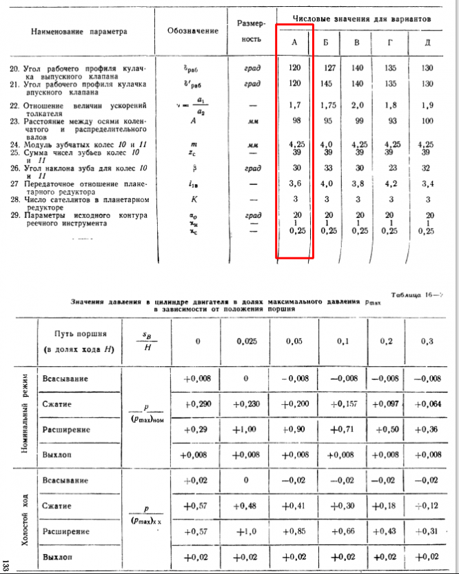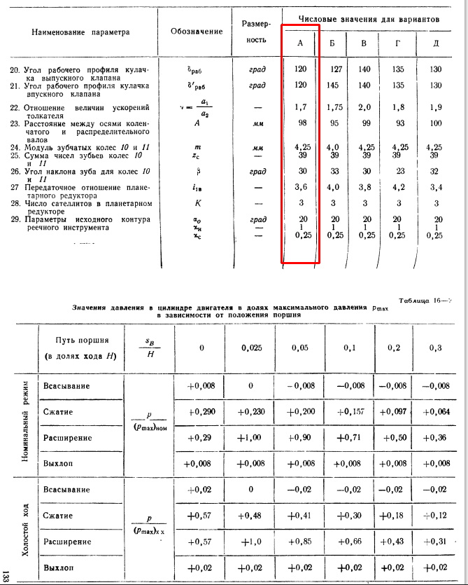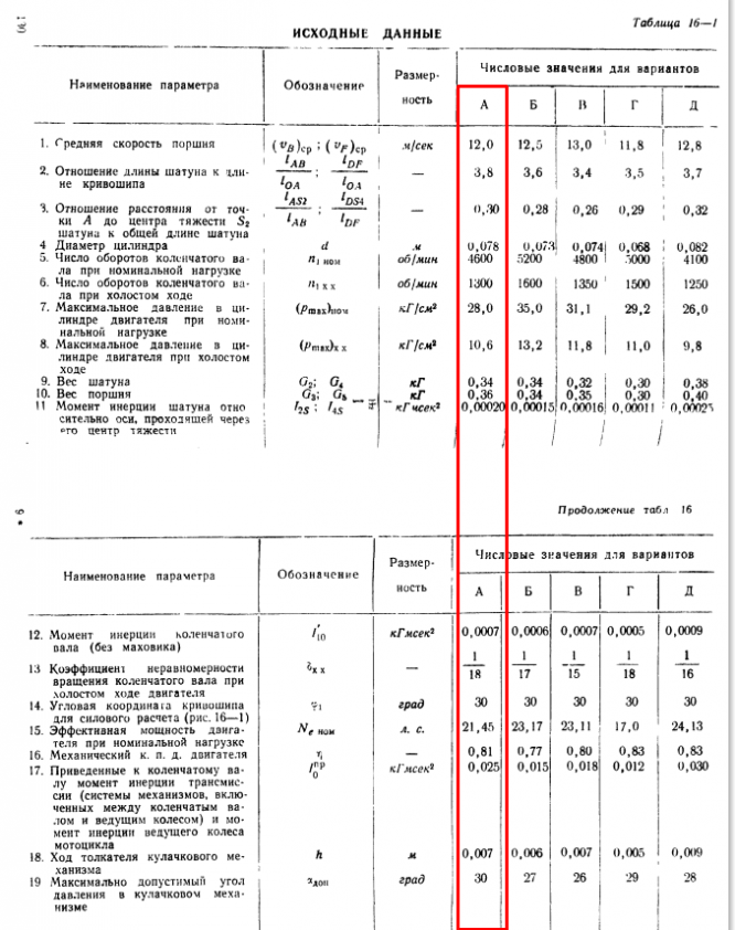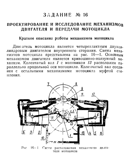 Курсовая работа 16: Проектирование и исследование механизмов двигателя и передачи мотоцикла вариант А