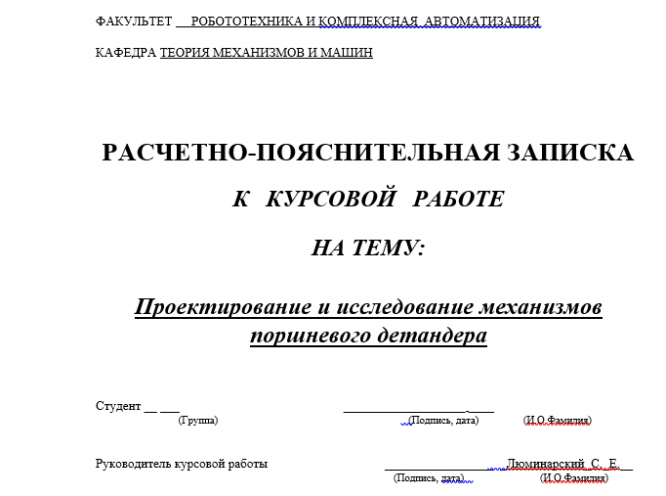 Для студентов МГТУ им. Н.Э.Баумана по предмету Теория механизмов и машин (ТММ)Проектирование и исследование механизмов поршневого детандераПроектирование и исследование механизмов поршневого детандера