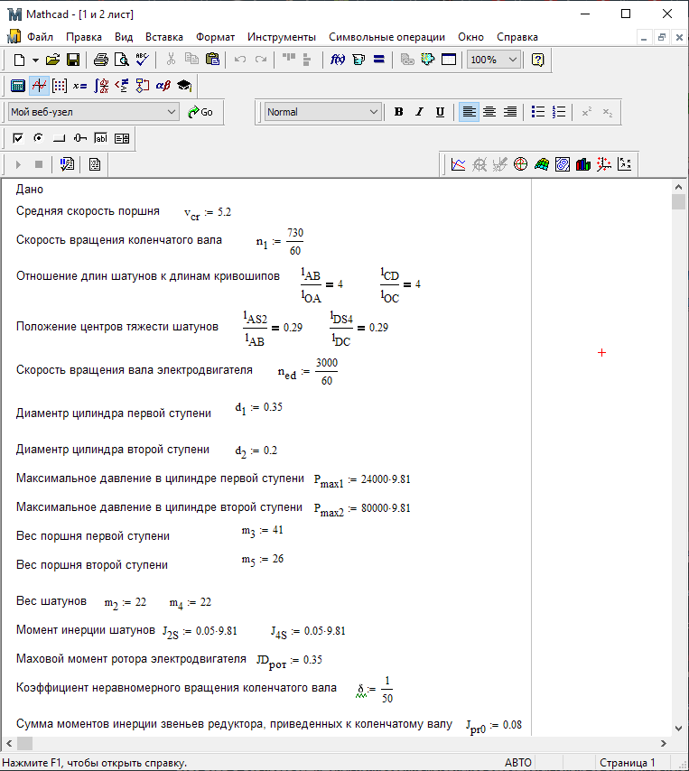 Для студентов МГТУ им. Н.Э.Баумана по предмету Теория механизмов и машин (ТММ)Проектирование и исследование механизмов двухступенчатого двухцилиндрового воздушного компрессораПроектирование и исследование механизмов двухступенчатого двухцилиндрового воздушного компрессора