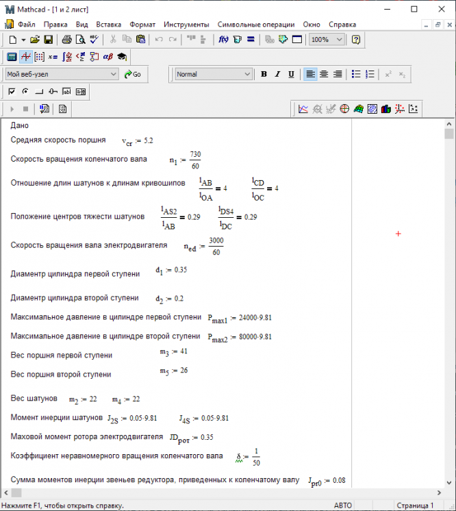 Курсовая работа 80: Проектирование и исследование механизмов двухступенчатого двухцилиндрового воздушного компрессора вариант А