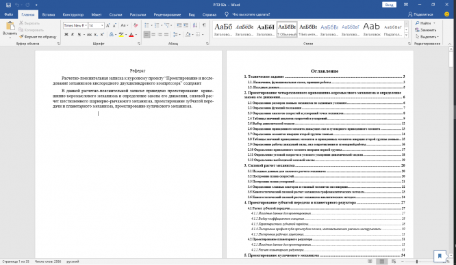 Характеристики курсовой работы