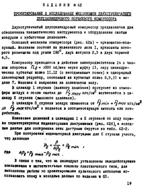 Курсовая работа 62: Проектирование и исследование механизмов двухступенчатого двухцилиндрового поршневого компрессора вариант Б
