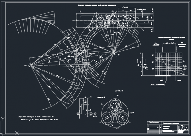 5. Определение передаточного отношения, линейных скоростей и чисел оборотов звеньев спроектированного редуктора графическим способом.