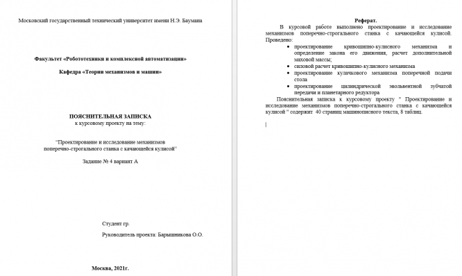 Для студентов МГТУ им. Н.Э.Баумана по предмету Теория механизмов и машин (ТММ)Проектирование и исследование механизмов поперечно-строгального станка с качающейся кулисойПроектирование и исследование механизмов поперечно-строгального станка с качающейся кулисой
