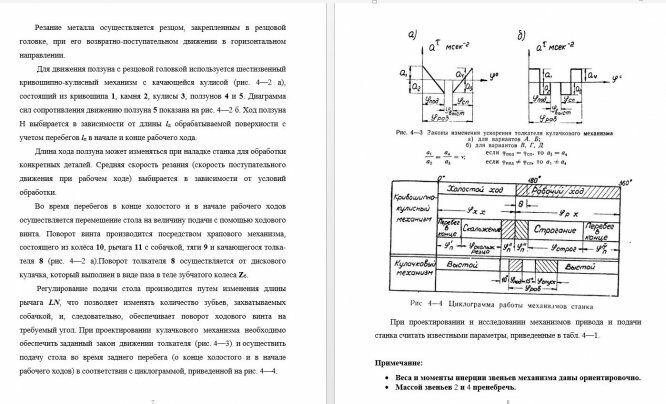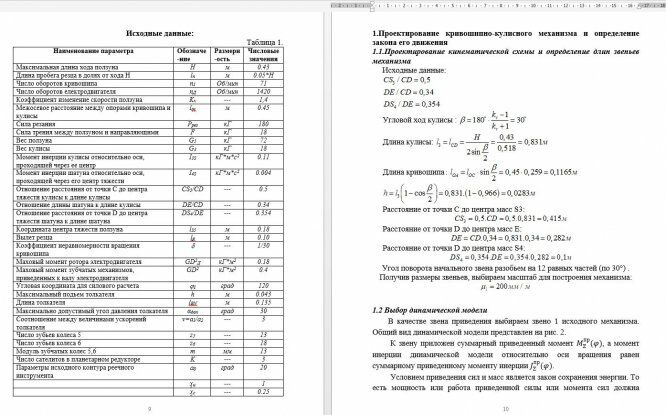Пояснительная записка к курсовому проекту " Проектирование и исследование механизмов поперечно-строгального станка с качающейся кулисой " содержит 40 страниц машинописного текста, 8 таблиц.