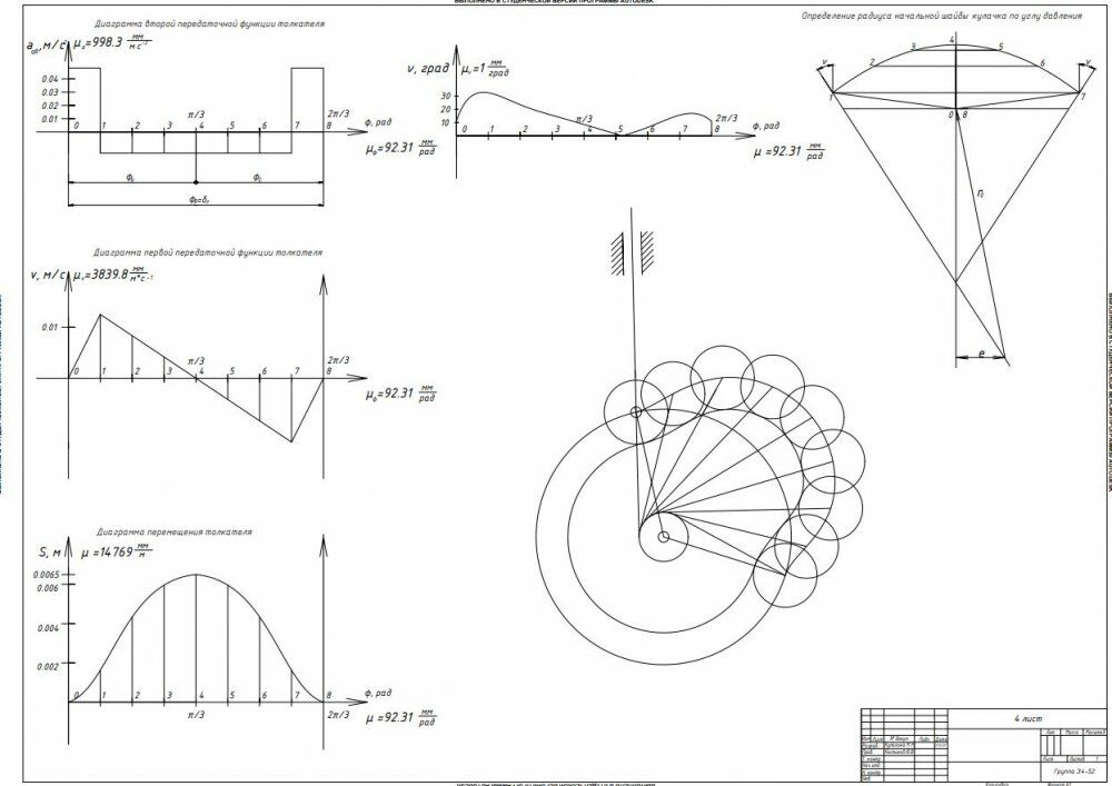 Пояснительная записка к курсовой работе “Проектирование и исследование механизмов двухступенчатого двухцилиндрового поршневого компрессора” содержит 52 страниц машинописного текста, 7 рисунков, 21 таблиц, 2 приложения. Состоит из 4 частей, для написания было использовано 5 источников. Ключевые слова: основной механизм поршневого компрессора; закон движения звена приведения; маховая масса; кинетостатический силовой расчет; цилиндрическая эвольвентная зубчатая передача; однорядный планетарный редуктор; кулачковый механизм. В пояснительной записке проведено: проектирование основного механизма двухступенчатого двухцилиндрового поршневого компрессора, определение закона движения звена приведения, расчёт дополнительной маховой массы, кинетостатический силовой расчёт центрального механизма, синтез цилиндрической эвольвентной зубчатой передачи, проектирование однорядного планетарного механизма, синтез плоского внеосного кулачкового механизма с силовым замыканием высшей кинематической пары.