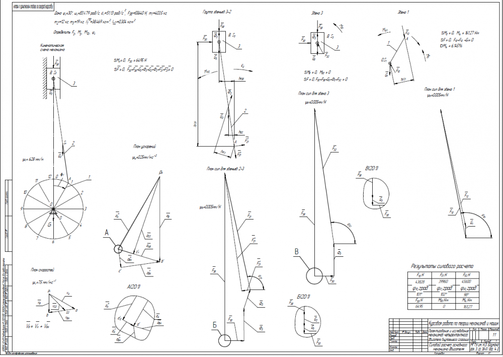 - 2. Силовой кинетостатический расчет механизма. 20