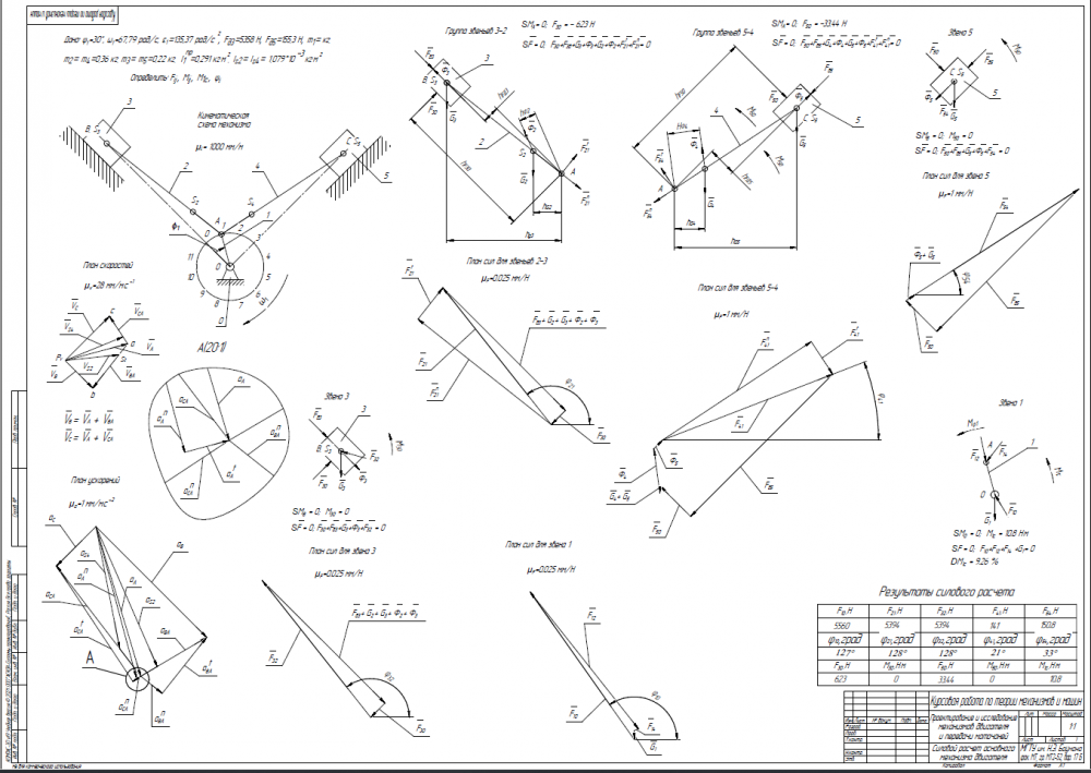 Лист 2 - Силовой анализ ![]()