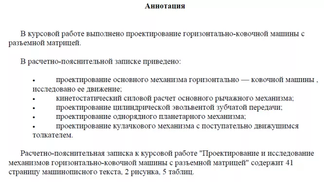 Характеристики курсовой работы