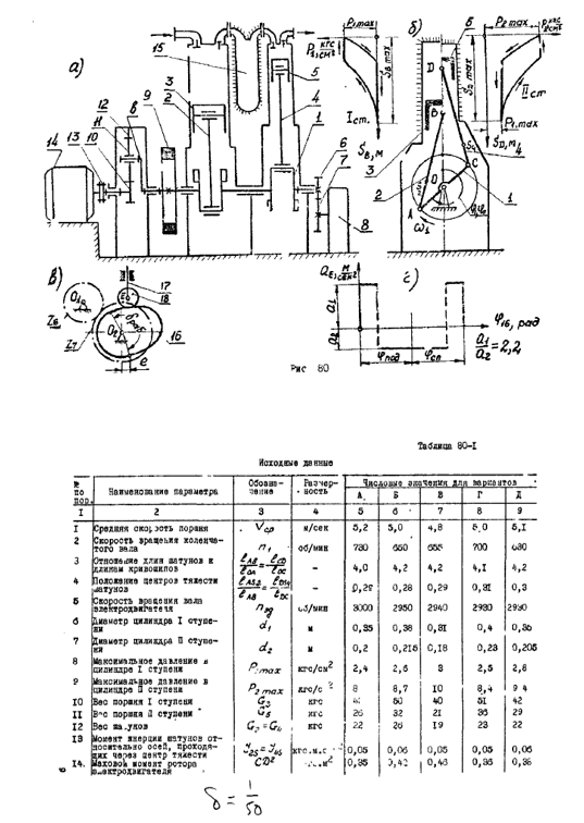Курсовая работа 80: Проектирование и исследование механизмов двухступенчатого двухцилиндрового воздушного компрессора вариант А