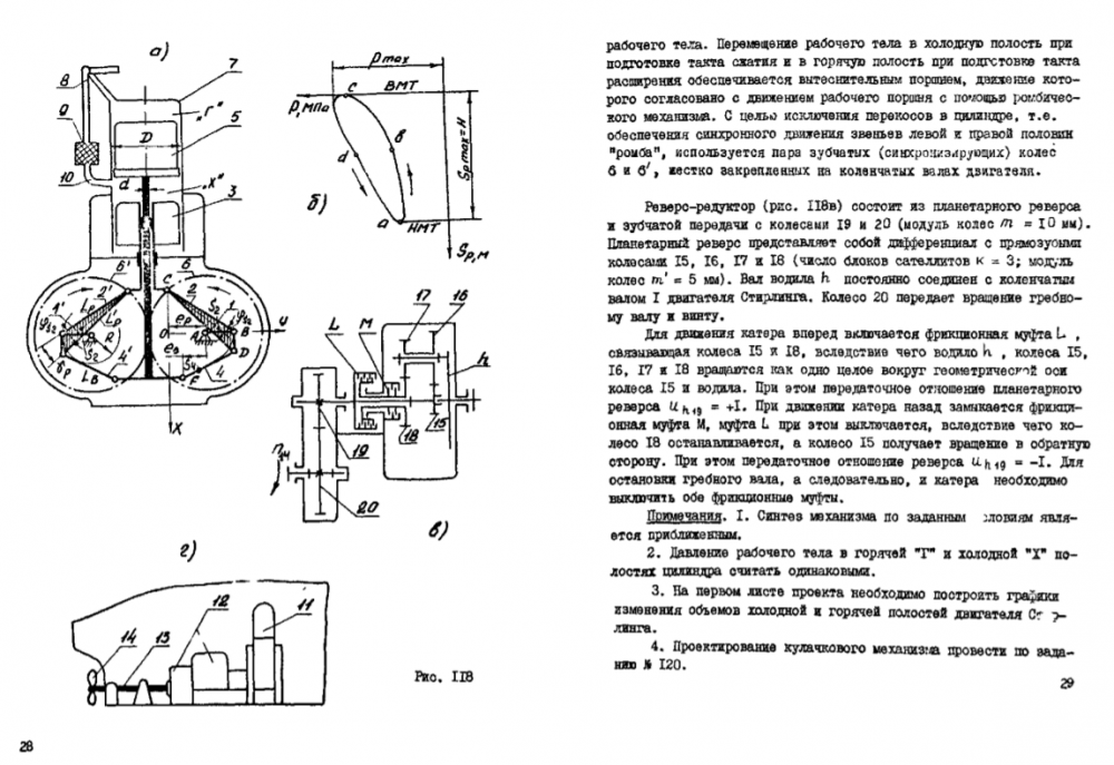 Курсовая работа 118: Проектирование и исследование механизмов судовой силовой установки с двигателем Стирлинга вариант Д