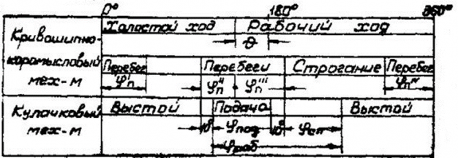 Рис. 1 – 5. Циклограмма работы механизма строгального станка φпод = φсп