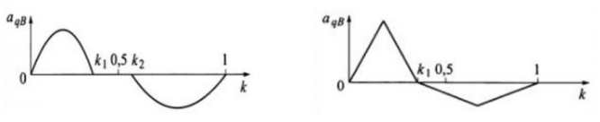 Рис. 1 – 3 Закон изменения ускорения толкателя кулачкового механизма на фазе удаления