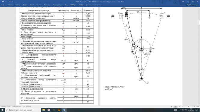 Для студентов МГТУ им. Н.Э.Баумана по предмету Теория механизмов и машин (ТММ)Проектирование и исследование механизмов поперечно-строгального станка с качающейся кулисойПроектирование и исследование механизмов поперечно-строгального станка с качающейся кулисой