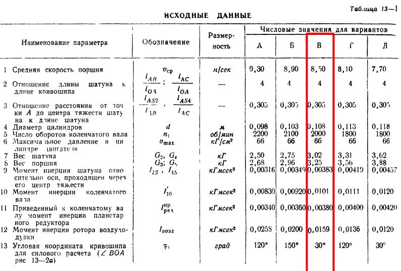 Запуск двигателя производится от электростартера (рис.13-1,13-2 б), раскручивающего коленчатый вал до необходимой угловой скорости через зубчатую передачу , составленную из колёс 6 и 7 .при проектировании и исследовании механизмов двигателя считать известными параметры, приведённые в табл.13-1.