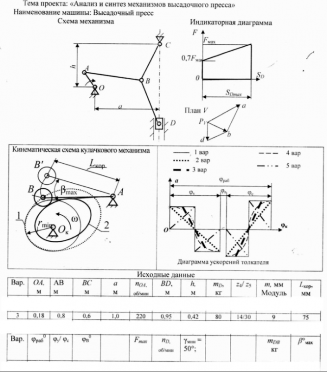 Для студентов по предмету Теория механизмов и машин (ТММ)Анализ и синтез механизмов высадочного прессаАнализ и синтез механизмов высадочного пресса