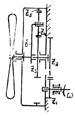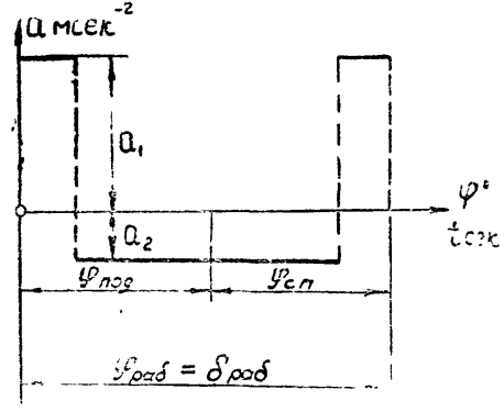 Управление газораспределением осуществляется клапанами 4, которые приводятся в движение кулачковыми механизмами (рис. 3). Кулачки 6 закреплены на валу, который кинематически связан с коленчатым валом через зубчатую передачу z8, z7. Толкатель 5 двигается поступательно, и ускорение его изменяется по закону, представленному на рис. 4. Работа клапанов строго увязана по фазам с вращением коленчатого вала, угловая скорость которого в два раза больше угловой скорости кулачкового вала. Вентилятор охлаждающего устройства приводится в движение от коленчатого вала двигателя через зубчатый механизм (рис. 5), состоящий из передачи z1, z2 с неподвижными осями и планетарного редуктора z3, z4, z5. При проектировании и исследовании механизмов автомобиля считать известными параметры, приведенные в табл.1.