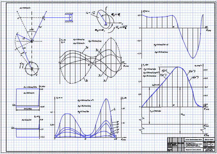 Данная записка содержит 27 страниц машинописного текста, в том числе: техническое задание, таблицу с исходными данными, 2 приложения.Расчётно-пояснительная записка содержит расчёты и проектирование механизма насоса для перекачки вязких жидкостей, определение закона его движения под действием заданных силовых факторов, действующих в кинематических парах механизма с учётом геометрии и масс звеньев; расчёт и исследование кулачкового механизма, предназначенного для своевременного открытия и закрытия впускного и выпускного клапанов.