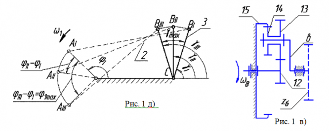 При повороте руля летательного аппарата (звено 3) из одного крайнего положения (I) в другое (III) (рис. 1а) на угол gmax на звено 3 действует момент сопротивления MC3, зависимость которого от угла поворота g представлена диаграммой (MC3, g1) (рис. 1в).