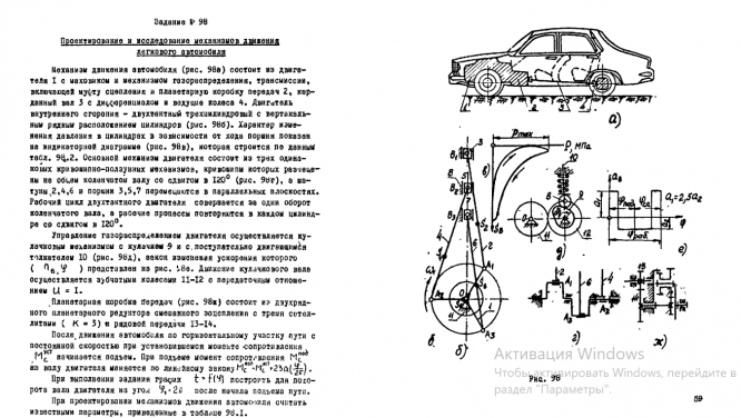 Курсовая работа 98: Проектирование и исследование механизмов движения легкового автомобиля 98а вариант А