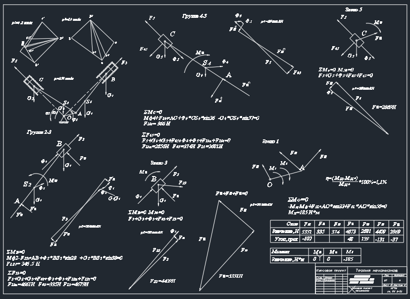 Лист 2 - Силовой расчет ![]()