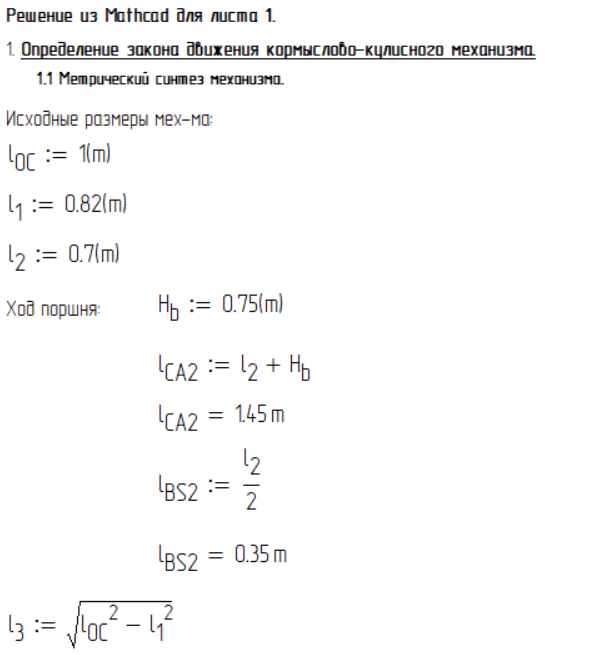 Лист 1 - Определение закона движения механизма