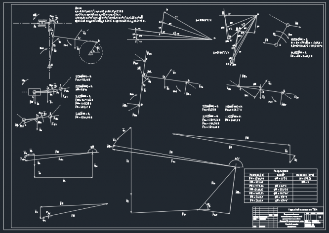 В пояснительной записке приведены: проектирование механизма, определение закона движения звена приведения, силовой расчёт механизма, проектирование цилиндрической эвольвентной зубчатой передачи, проектирование двухрядного планетарного редуктора с внешними зацеплениями, проектирование кулачкового механизма с поступательно движущимся роликовым толкателем.