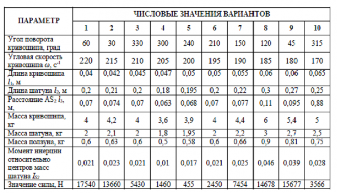 ЗАДАНИЕ 10. Самоходное шасси с двухтактным двигателем внутреннего сгорания предназначено для перемещения грузов. Кривошипно-ползунный механизм двигателя преобразует возвратно-поступательное движение ползуна (поршня) 3 во вращательное движение кривошипа 1. Цикл движения поршней включает такты расширения (в конце такта открываются выпускные клапаны и продувочные окна цилиндра, и продукты горения удаляются в выпускную систему) и такт сжатия, заканчивающийся взрывом впрыснутого в цилиндр топлива.