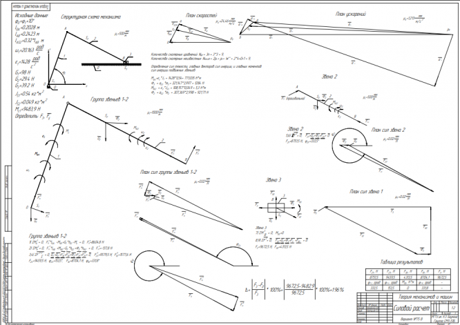 • кинетостатический силовой расчет коромысло-ползунного механизма;