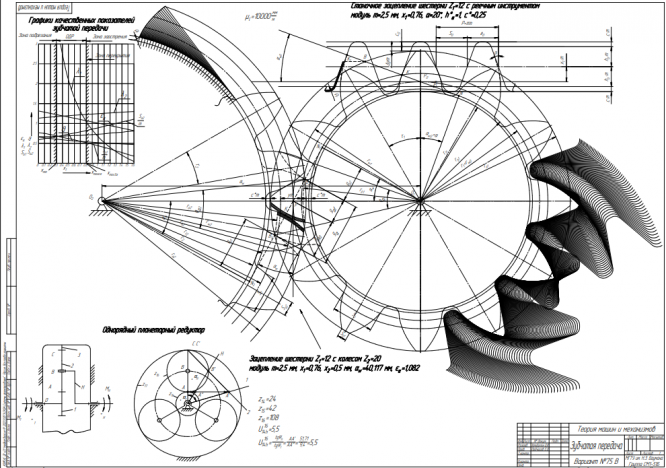 • проектирование цилиндрической эвольвентной зубчатой передачи, проектирование однорядного планетарного механизма;