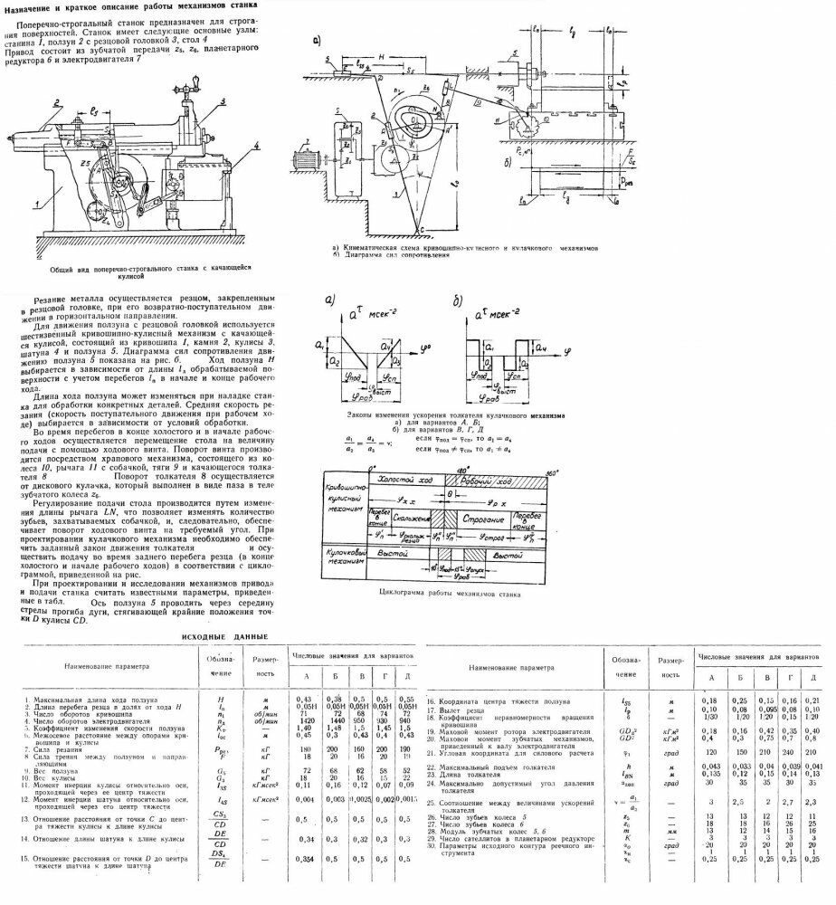 Для студентов МГТУ им. Н.Э.Баумана по предмету Теория механизмов и машин (ТММ)Проектирование и исследование механизмов поперечно-строгального станка с качающейся кулисойПроектирование и исследование механизмов поперечно-строгального станка с качающейся кулисой