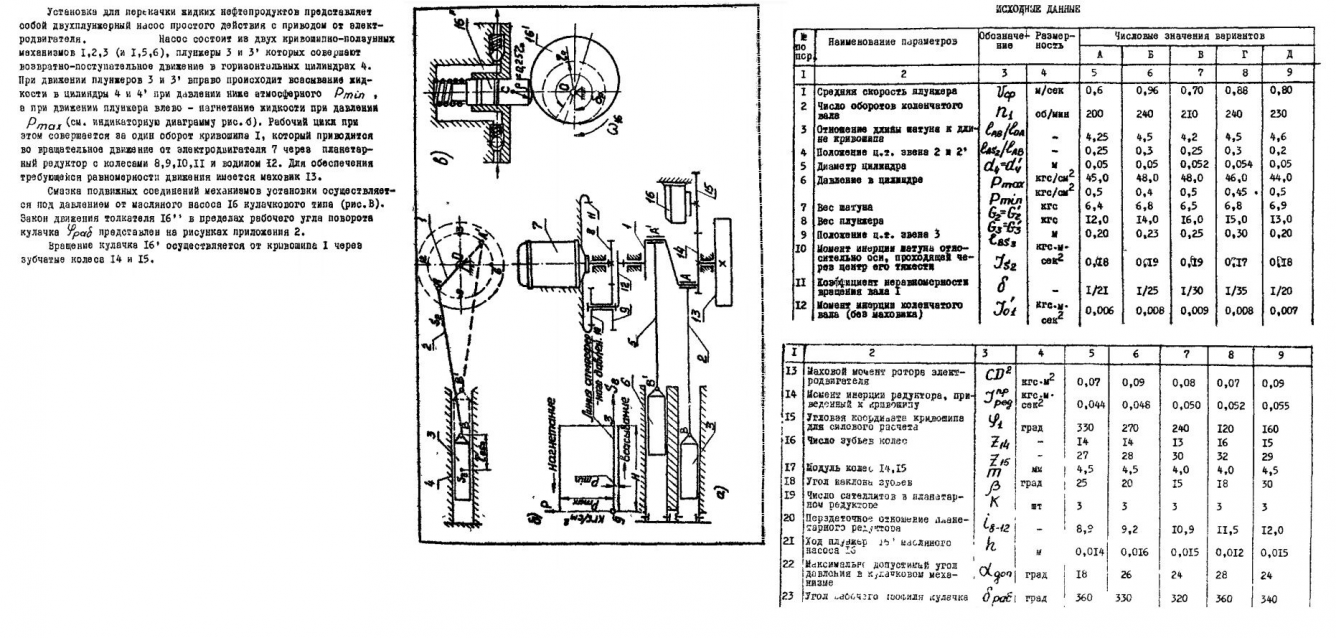 Курсовая работа 64: Проектирование и исследование механизмов насосной установки с электроприводом вариант А
