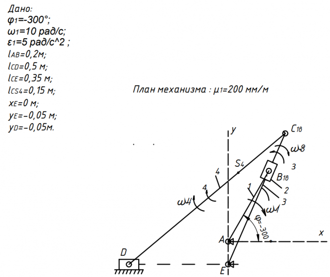 Для студентов МГТУ им. Н.Э.Баумана по предмету Теория механизмов и машин (ТММ)Типовой расчёт 1, Фи = -300Типовой расчёт 1, Фи = -300