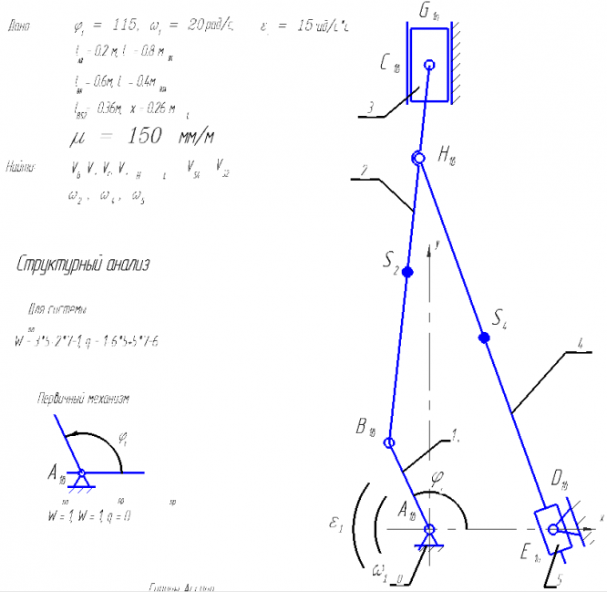 Для студентов МГТУ им. Н.Э.Баумана по предмету Теория механизмов и машин (ТММ)Типовой расчёт 1, Фи = 115Типовой расчёт 1, Фи = 115