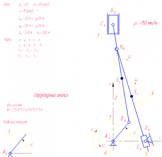 Для студентов МГТУ им. Н.Э.Баумана по предмету Теория механизмов и машин (ТММ)Типовой расчёт 1, Фи = 50Типовой расчёт 1, Фи = 50