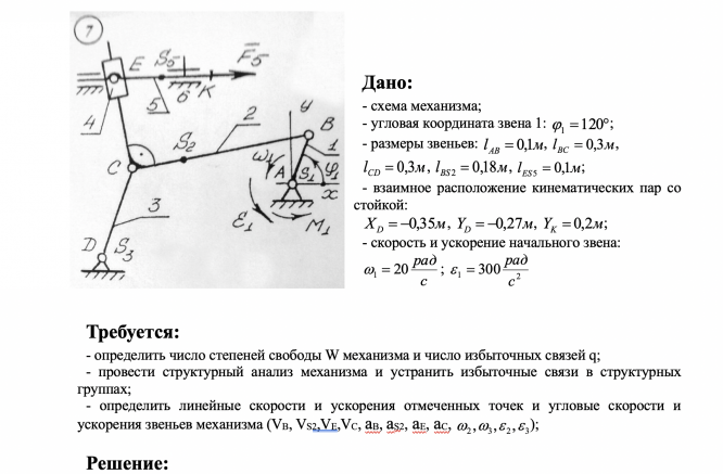 ДЗ: Структурный и кинематический анализ механизма Вариант 7Б вариант 7