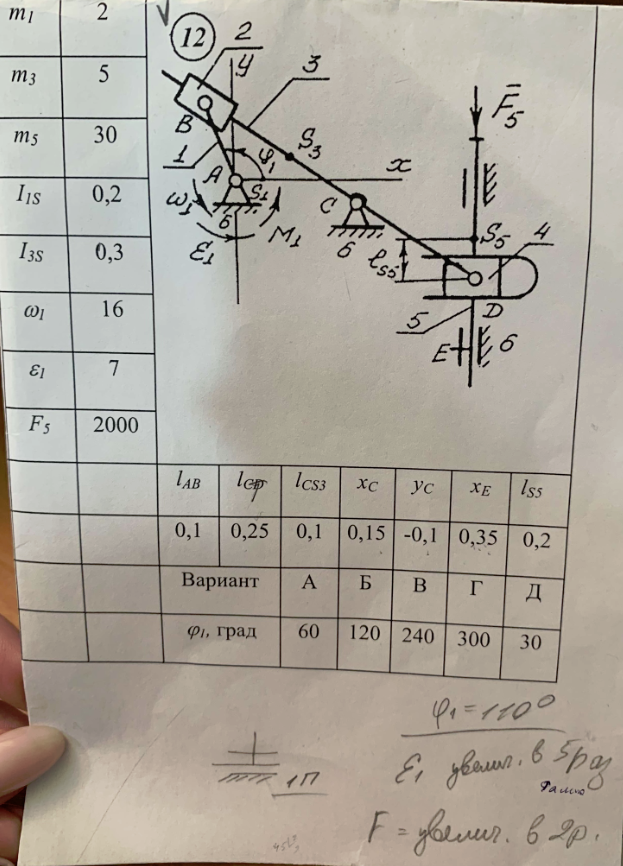 ДЗ: Типовой расчёт №2 (кинематический анализ), фи=110 вариант 12