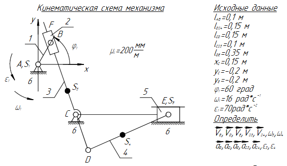 Для студентов МГТУ им. Н.Э.Баумана по предмету Теория механизмов и машин (ТММ)Кинематический анализ вар 32(а)Кинематический анализ вар 32(а)