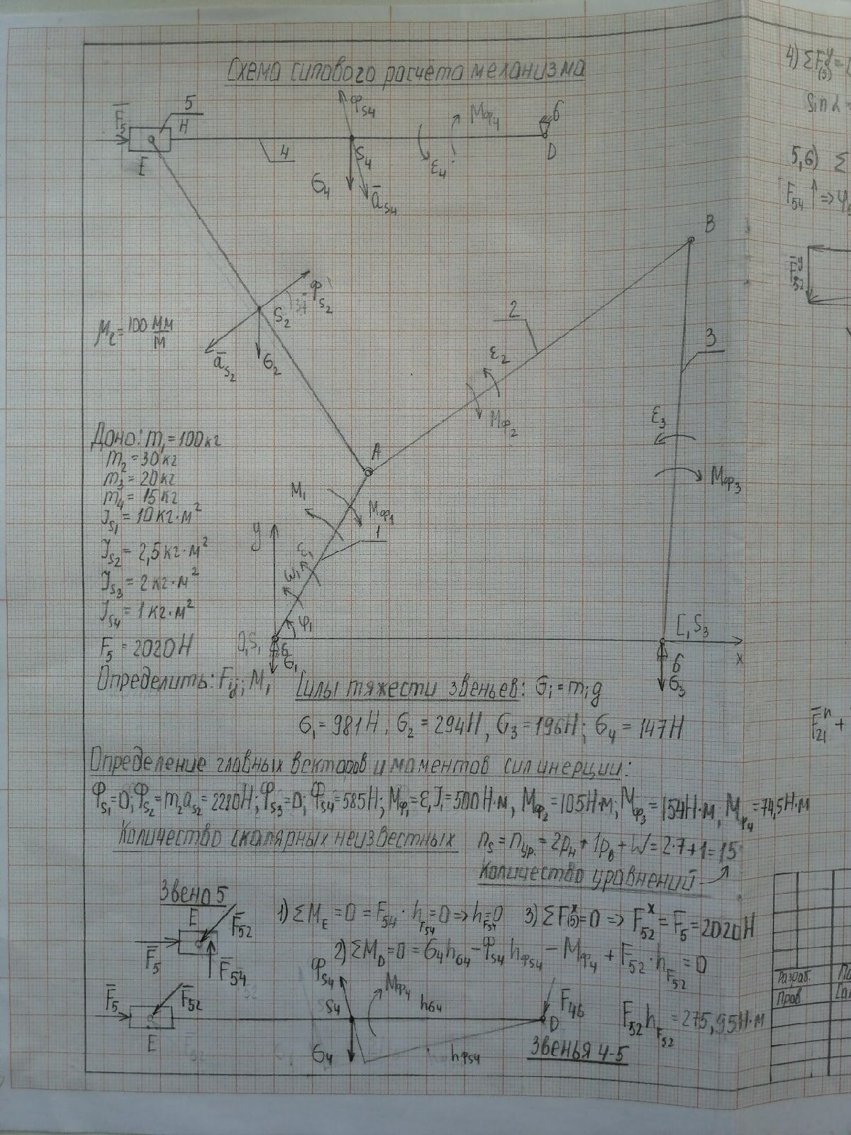 Для студентов МГТУ им. Н.Э.Баумана по предмету Теория механизмов и машин (ТММ)Силовой анализСиловой анализ