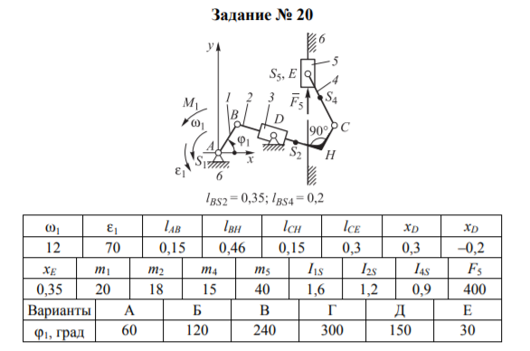 ДЗ: Кинематический анализ. Вариант Е вариант 20