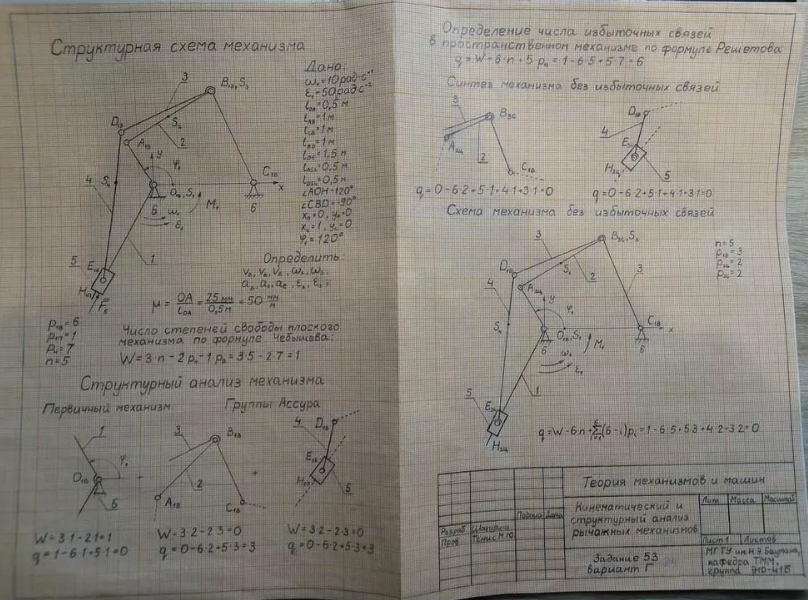 ДЗ 53: Кинематический и силовой расчет вариант Г
