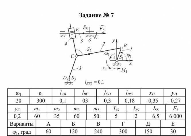 ДЗ: Силовой расчёт (фи=240) Автокад вариант 7
