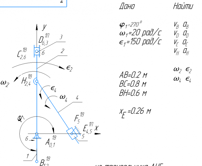 ДЗ: Кинематический анализ ( скорости и ускорения ) 270. Решение в компасе вариант 23