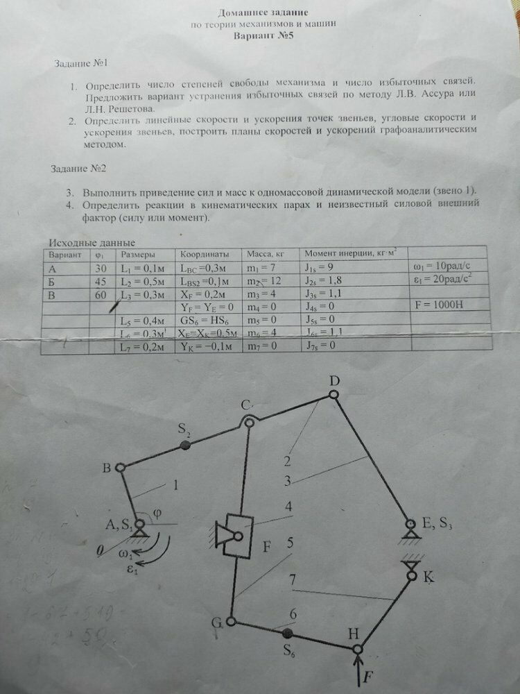 Для студентов МГТУ им. Н.Э.Баумана по предмету Теория механизмов и машин (ТММ)вариант 5. все пунктывариант 5. все пункты