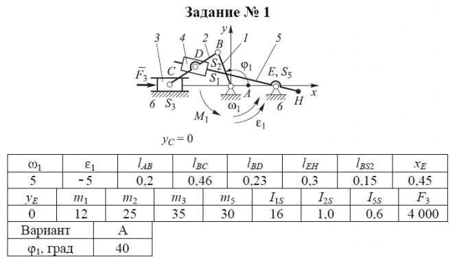 Для студентов МГТУ им. Н.Э.Баумана по предмету Теория механизмов и машин (ТММ)ДЗ (φ = 40°) (Структурный анализ, кинематический анализ, силовой расчёт)ДЗ (φ = 40°) (Структурный анализ, кинематический анализ, силовой расчёт)